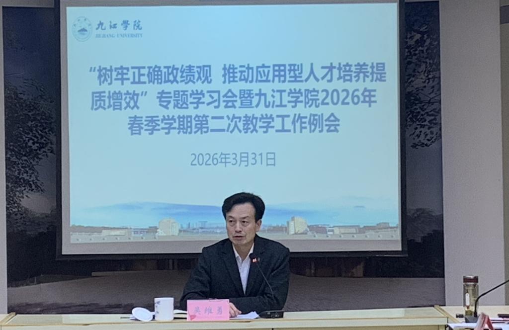 吴维勇以“以正确的教育政绩观 推动九江学院教育事业高质量发展”为题作专题报告。他指出,树立和践行正确的教育政绩观,是落实“为党育人、为国育才”初心使命的根本要求,是推动学校教育事业高质量发展的重要保障,要紧紧围绕“为谁培养人、怎样培养人、培养什么人”这一根本问题,立足九江学院作为地方应用型本科高校的办学定位,从“为谁树绩”“怎样树绩”“树何政绩”三个维度深入理解和践行正确的教育政绩观,切实把立德树人根本任务落到实处,把教育教学质量作为衡量政绩的核心标尺。